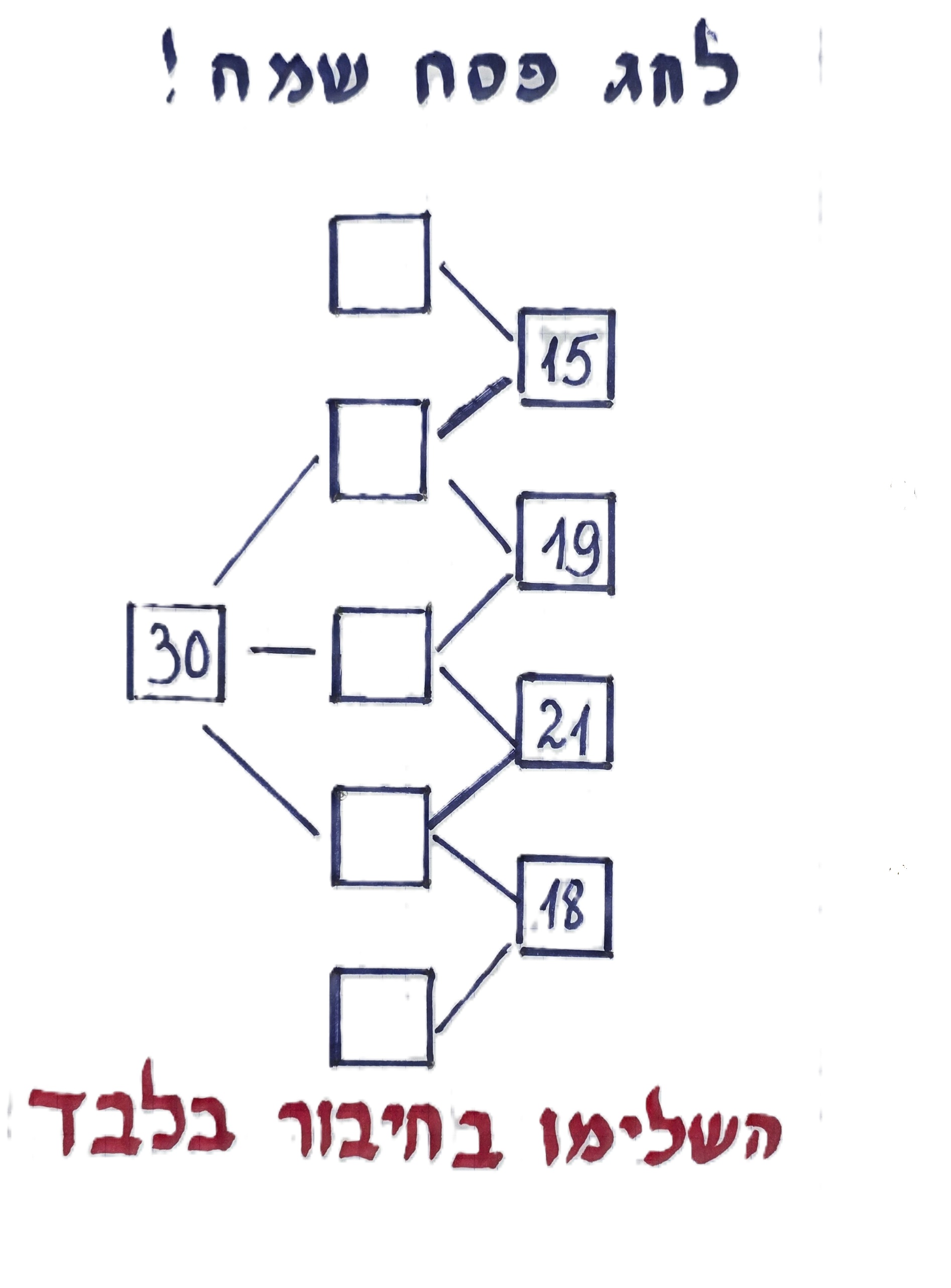 והפעם לחופשת הפסח מספר חידות: