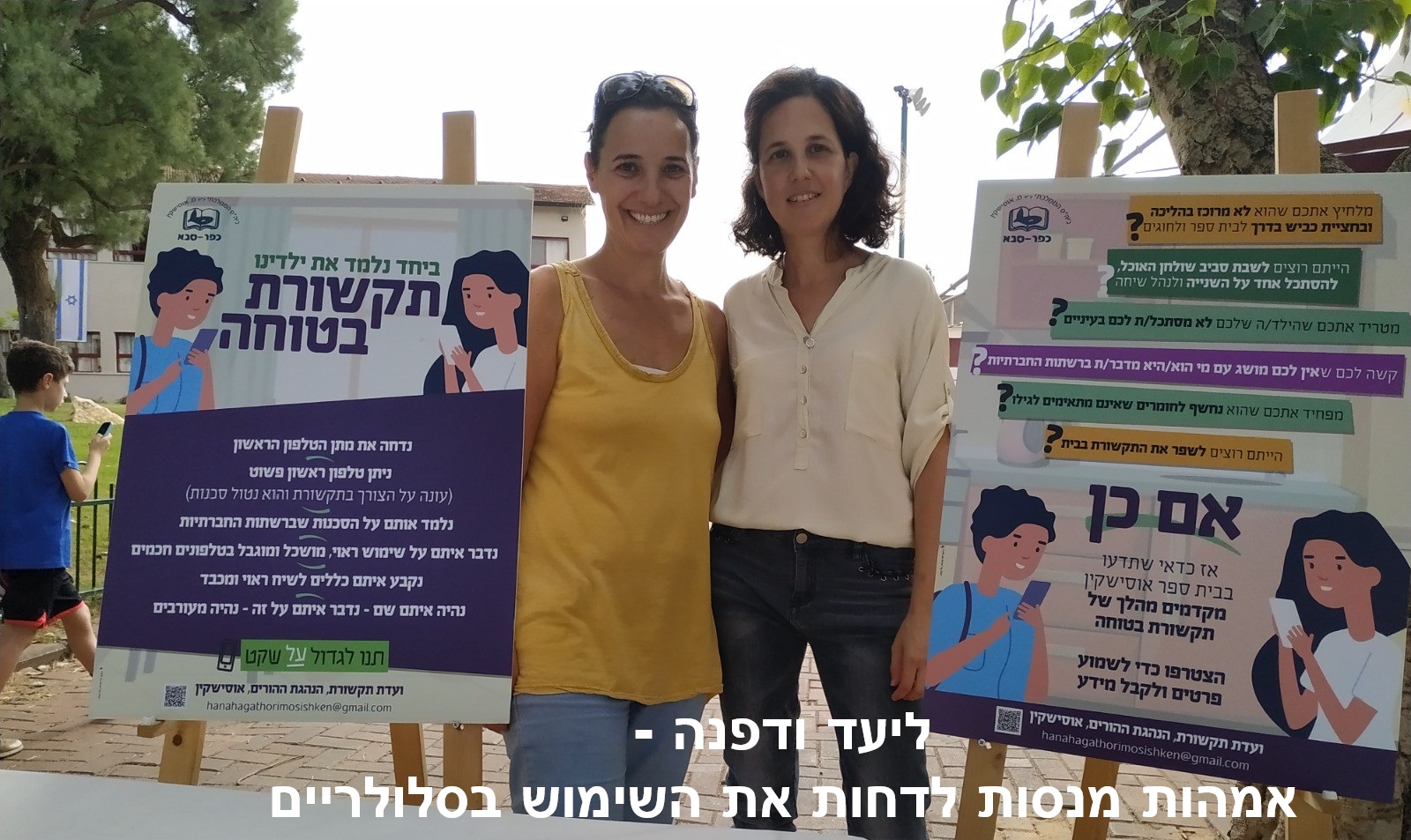 הצטרפתי", היא ממשיכה, "להנהגת ההורים בביה"ס ולצוות התקשורת. הזמנו הרצאות וסדנאות לילדים. המנהלת השתתפה בתקצוב. כל שנה אני עורכת רכישה מרוכזת של טלפונים פשוטים. זה כמובן מוזיל את המחיר, וגם משפיע על הגישה של ההורים. החלוקה נעשית בדוכן בתחום ביה"ס. ההורים מכירים אותי כ"אשת הטלפונים הבטוחים". הטלפונים האלה מיועדים לילדי כיתות ג', ד'. בכתה ב' ילדים לא זקוקים לשום טלפון. לי עצמי יש גם ילד בכתה ב'. הוא מבקש כל הזמן טלפון, ועדיין אנחנו לא נותנים לו."