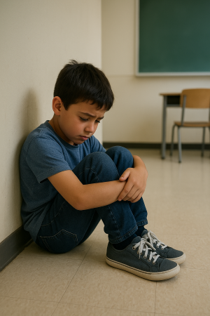 ילד חרד או ביישן – גוף סגור, ידיים מוצלבות, בהייה ברצפה, חיבוק עצמי, הימנעות ממגע.