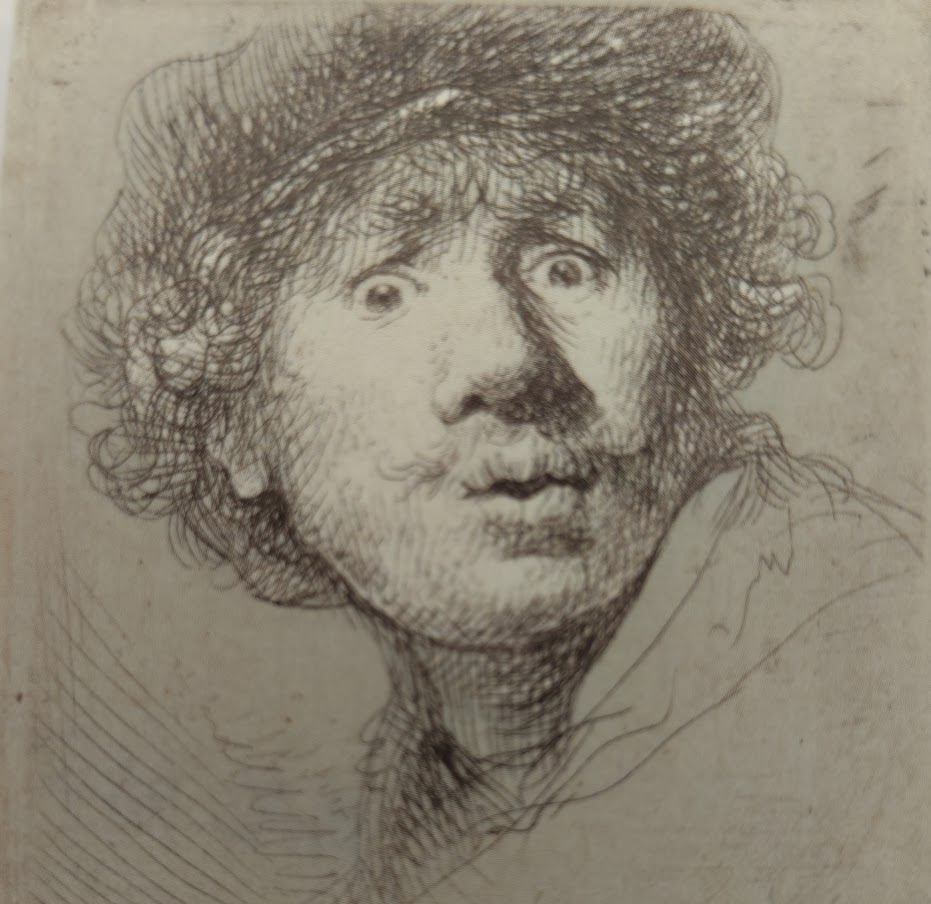 תחריט נחושת של רמברנדט בצעירותו ציור שמן רמברנדט בערוב ימיו