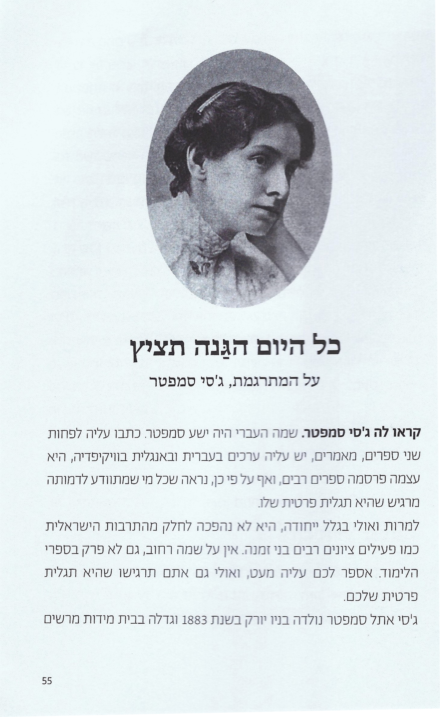 הספר "מעבר לים" הוא לקט של שירי הילדים המוכרים של ח.נ. ביאליק בעברית ובאנגלית. בצד כל שיר בעברית מופיע תרגומו לאנגלית. התרגומים לאנגלית נעשו על ידי המשוררת והמתרגמת ג'סי סמפטר ויצאו לאור לראשונה בשנת 1939. המתרגמת עלתה ארצה מניו יורק בשנת 1920 בהשפעתה של הנרייטה סולד וסיפור חייה הוא חלק מההיסטוריה של ההתיישבות בארץ. סיפור חייה מופיע בסוף הספר.